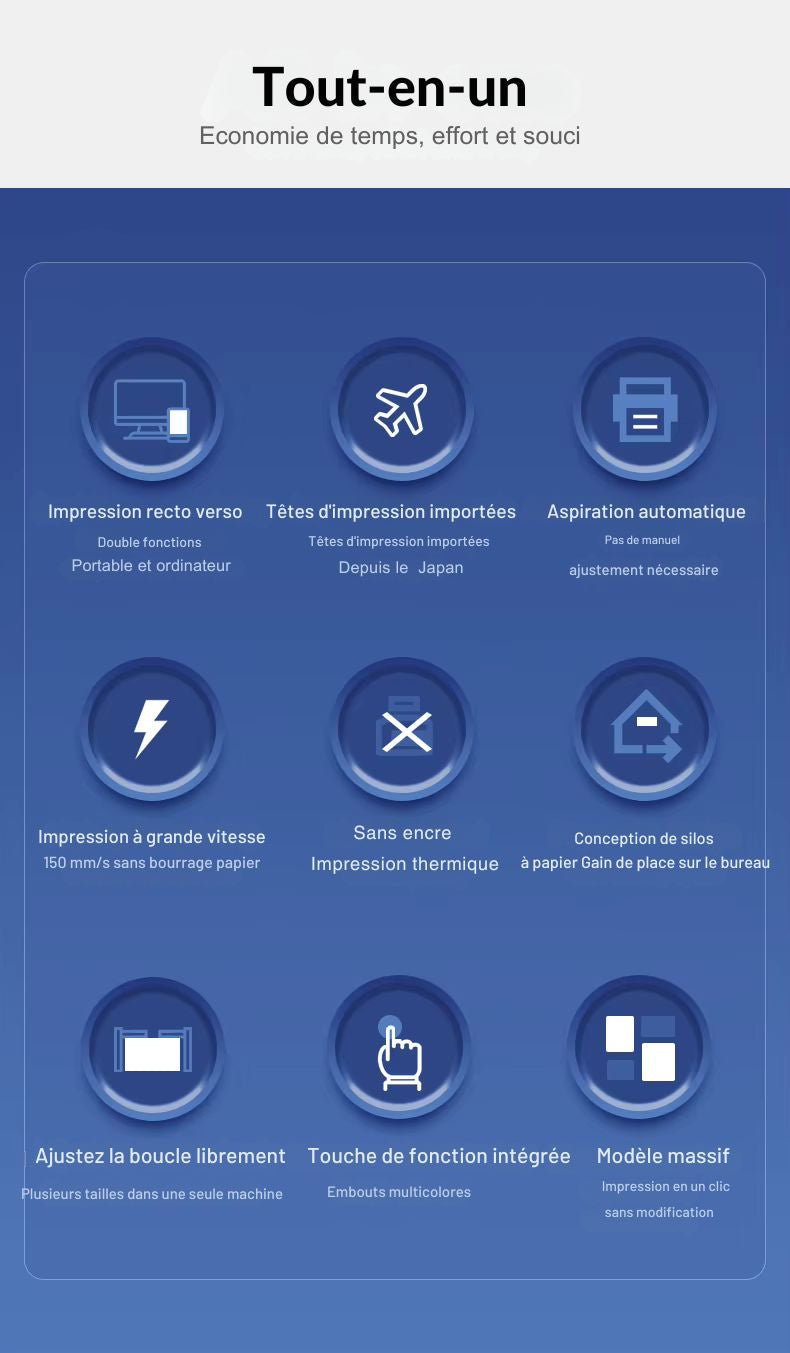 Grâce à la technologie thermique directe, plus besoin de toner ou d’encre coûteuse → impression propre, sans gaspillage.