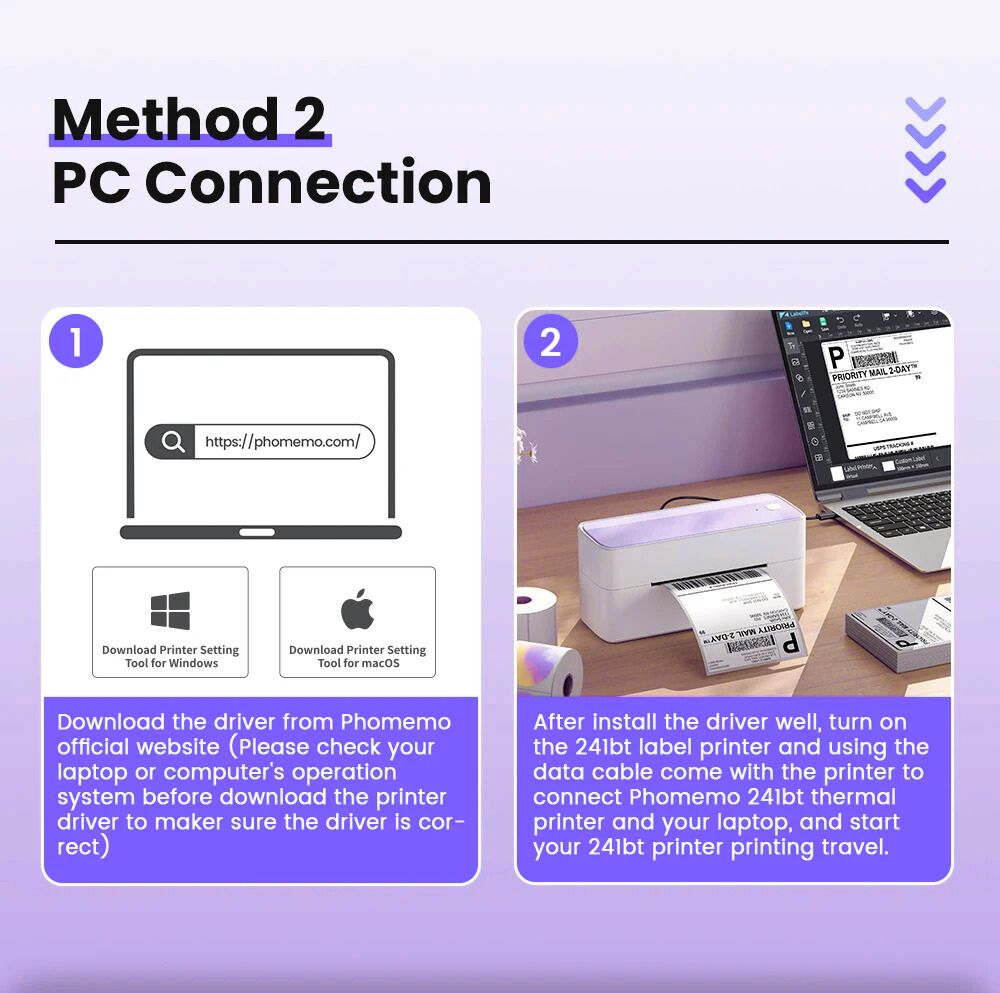 Grâce à sa double connectivité Bluetooth & USB, elle est compatible avec iOS, Android, Windows & Mac, et fonctionne avec toutes les plateformes e-commerce comme Amazon, Shopify, Etsy, eBay, Vinted, UPS, FedEx, PayPal, Shippo…