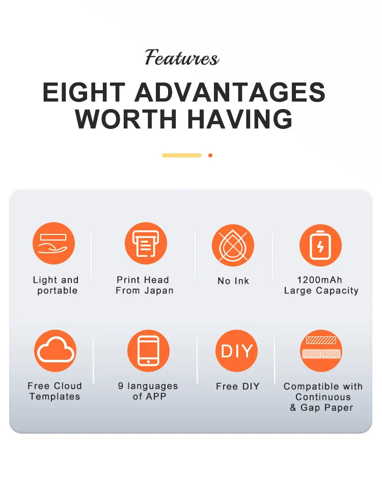 Sans encre ni toner, elle utilise la technologie thermique directe, garantissant des impressions rapides (20 mm/s), propres et économiques. Sa batterie rechargeable assure une grande autonomie, et son format de poche vous permet de l’emporter partout.