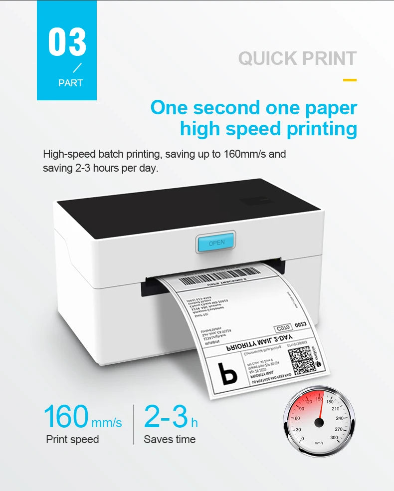 Avec une vitesse d’impression de 160 mm/s et une résolution de 203 dpi, vos étiquettes sont nettes, durables et prêtes à l’envoi en quelques secondes.